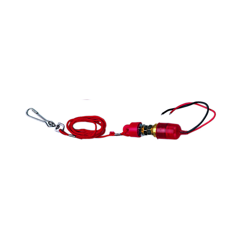 Automatic safety cut-off device in chrome-plated brass to regulate the ignition. Interrupts the circuit in case of outboard fall of thepilot. 12 Vdc 15A.