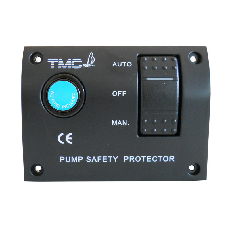 Pannello per pompa di sentina con porta fusibile e interruttorea 3 posizioni MANUALE-OFF-AUTOMATICO. Alim. 12V.Dim. mm. 84×115