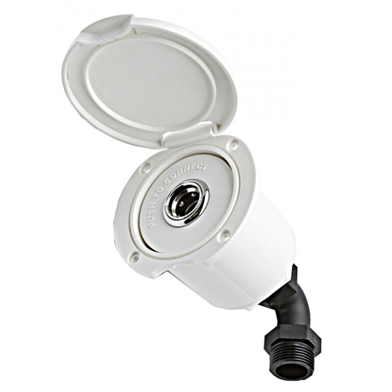 Fresh water inletis the perfect connection between the boats water network and theshore water supply. It is then easy to cook or have a shower when atthe dock, without using water from the tanks. (Not suitable for filling thewater tanks). White ABS housing with white splashproof cover. Pressureregulator up to 7.5 bar shore supply and delivers a 2.5 bar. Non-returnvalve, Male 3/4 threaded connector. White cover