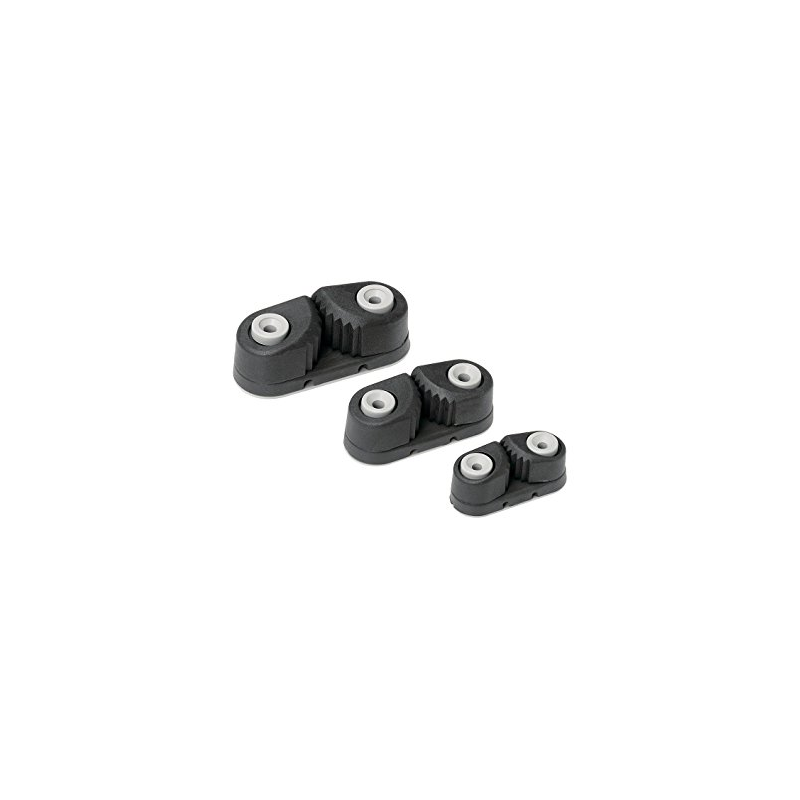 Strozzascotte in composito kevlar/Zytol offre prestazioni migliori rispetto alla fibra dicarbonio per leggerezza e resistenza allusura. La base è dotata di unabarra in acciaio inox antiusura. Le camme utilizzano molle a lamina inacciaio inox, sono più forti e hanno una durata maggiore rispetto allemolle a filo convenzionali. Per scotta Ø mm.6-12. Interasse fori mm.40. Carico di lavoro kg 230