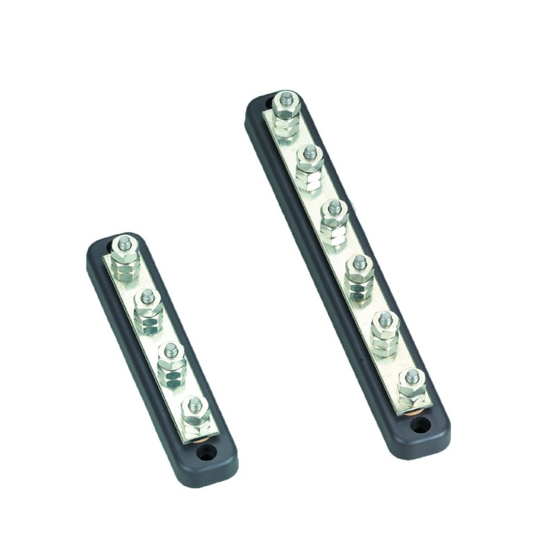 Terminale di connessione base in ABS, barra di distribuzione in rame stagnato, perni e dadi in acciaio inox.