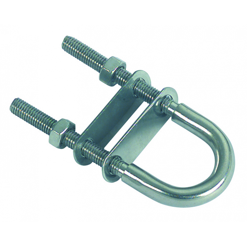 Cavallotto ad U in acciaio inox AISI 316 ricavato dal pieno, con due piastrine e due dadi.