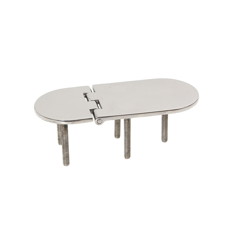 AISI 316 stainless steel. Thickness mm. 4. Reversed pin, opening 95°. Fastening with bolts, length mm. 145 x 65.