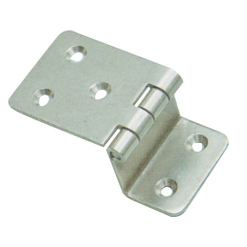 Hinges in mirror polished stainless steel. Size mm. 24×40/45×40. Offset 20mm.