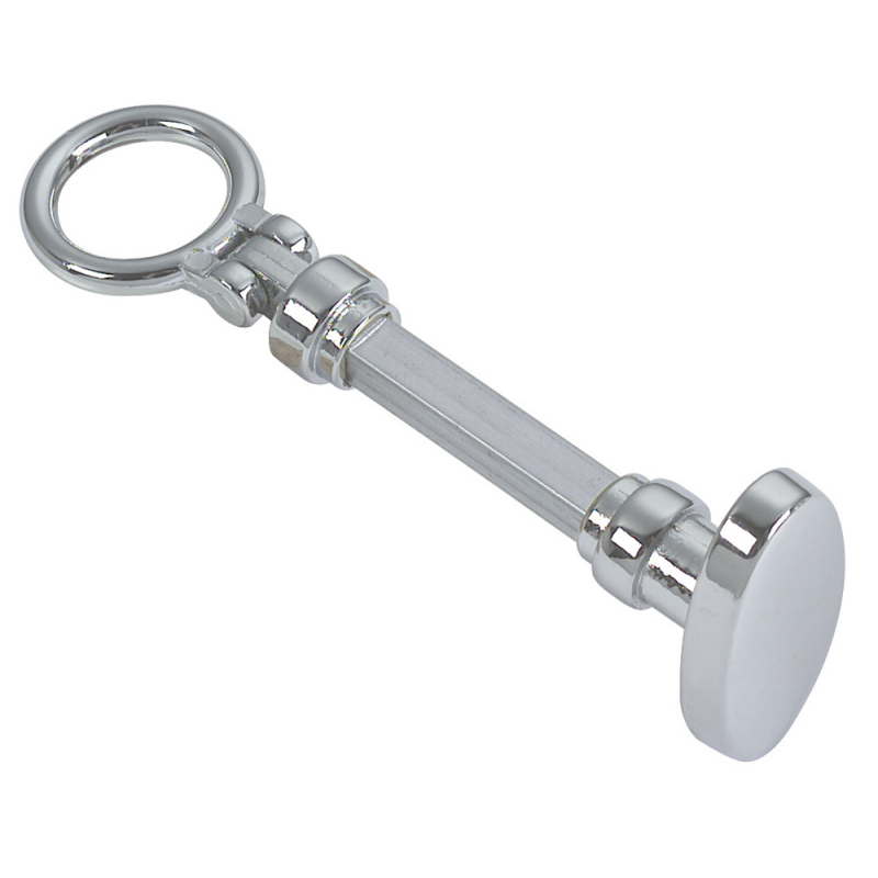 Knob/ring for locks in chromed brass, square 8 mm. Knob size 26×51 mm., protrusion 27 mm. Ring Ø 35 mm., protrusion 20 mm.