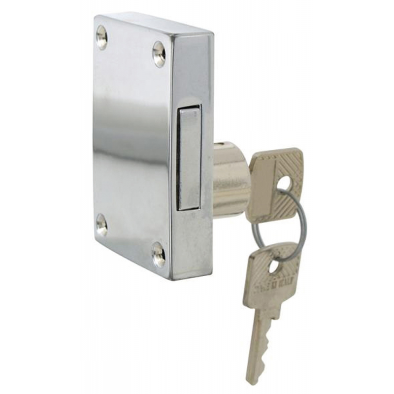 Serrature in ottone cromato quadro mm. 8 da appoggio, ad una mandata, misura mm. 60 x 40, cilindro Ø mm. 20, sporgenza cilindro mm. 15.