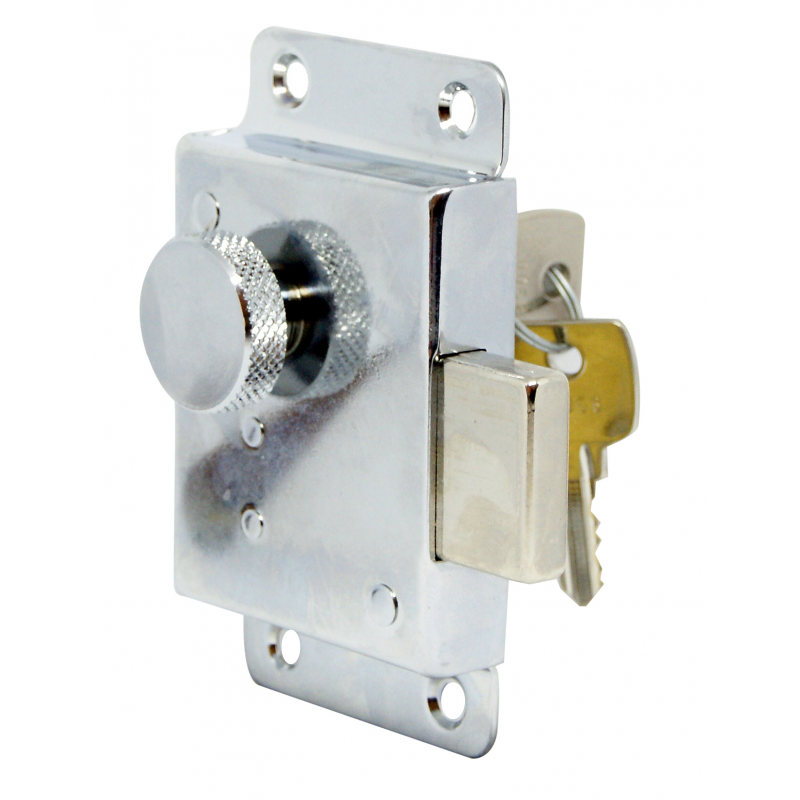 Free-standing locks made of chromed brass, knurled knob inside and cylinder outside.Size mm. 98x58x15. Entry mm. 37.