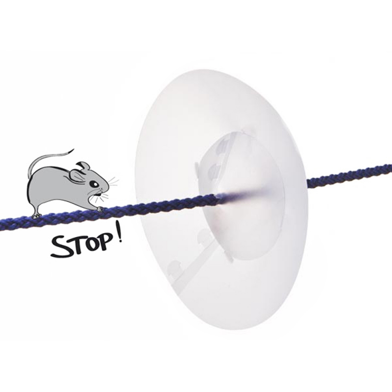 Anti topo in plastica trasparente resistente ai raggi UV. Impedisce il risalire dei topi dalla banchina lungo la cima di ormeggio.