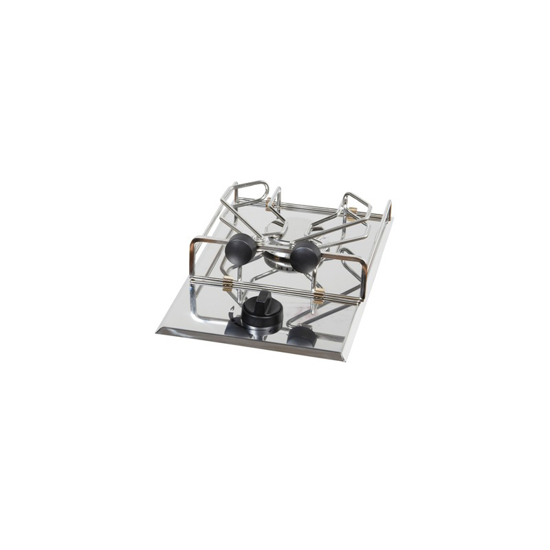 Mirror polished stainless steel hob, butane / propane gas, with safety thermocouple and pot holder. CE / USCG approved.