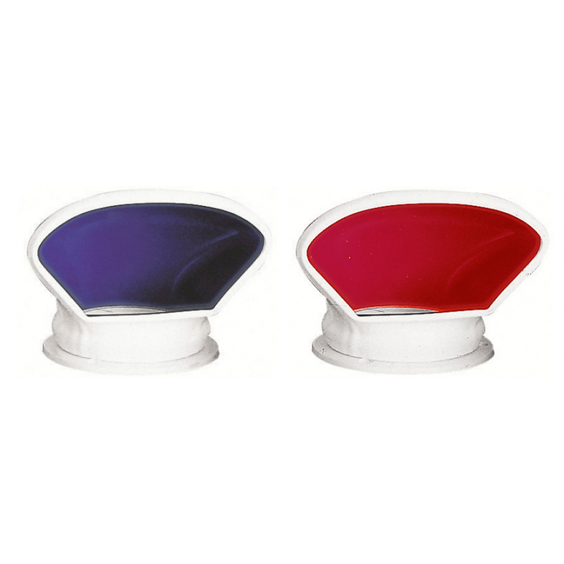 Cowl vent in soft PVC, resistant to UV-rays, easy mounting, smooth and shiny aspect. Blue or red inside. Supplied complete with deck plate and watertight sealing cover.