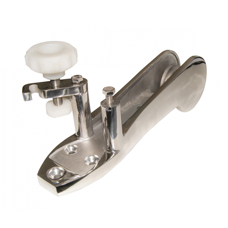 Musone di prua in acciaio inox AISI 316 microfuso con arresto per ancora e puleggia in acciaio inox. Adatto ad ancore Bruce,Danforth, Force e CQR, dim. lung. mm. 340 x larg. mm. 60, superficie di appoggio lung. mm. 242