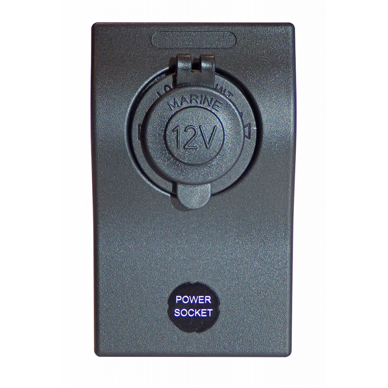 Plastic panel with cigarette lighter socket with protective cap. Fixing with 4 front screws hidden by a finishing plate. Magnetothermic protection from 15A Max. Depth of cigarette lighter socket mm 32. Panel dimensions mm. 60×100