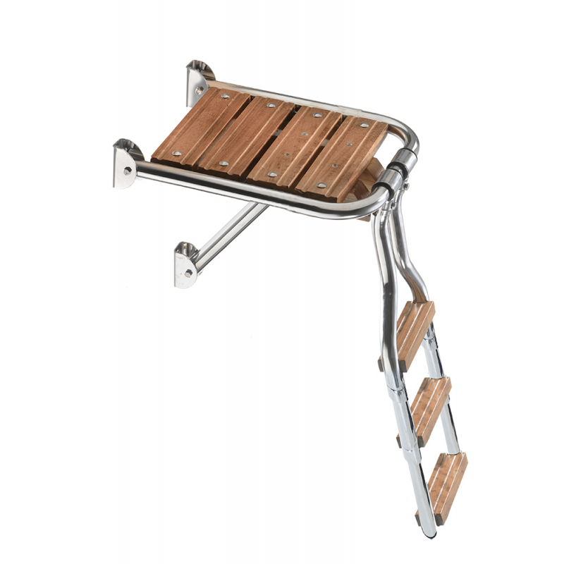 Plancetta di poppain acciaio inox e legno marino, completa di scaletta pieghevole e ribaltabile art. 3030437.