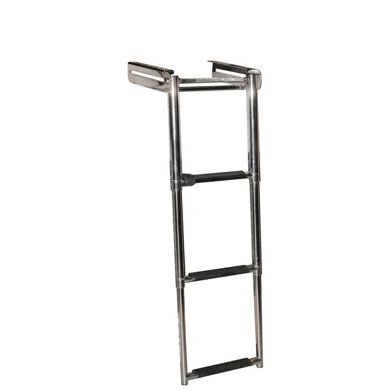 Retractable telescopic ladderin stainless steel AISI 316 with sliding guide, applicationunder the swim platform. Non-slip steps in black plastic