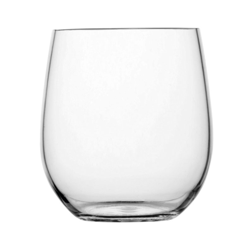 Bicchieri realizzati in Tritan, materiale plastico infrangibile ad alta trasparenza e brillantezza dotati un anello antiscivolo alla base che ne impedisce lo scivolamento sul tavolo. Capacità ml 414. Set 6 pz.