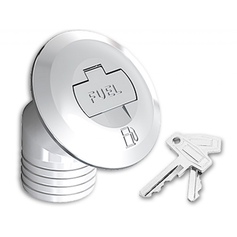 Deck filler in chrome-plated brass, tilted 30° with lever for opening and lock.