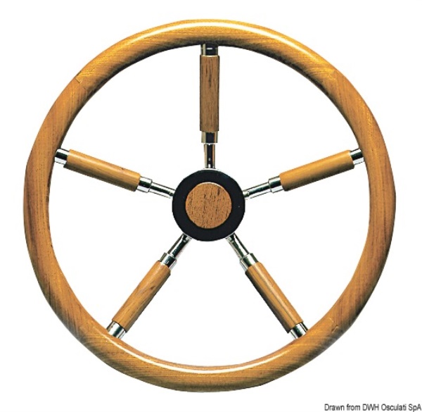 Timone con cerchio esterno in teak e razze rivestite in teak Osculati
