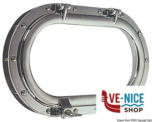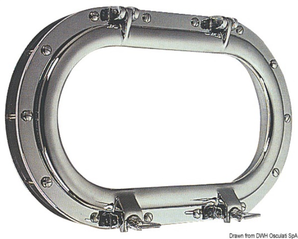 ConfrontaPassiuomo, oblò Oblò e passauomo in ottone ed acciaio inox Oblò Ovale grande In ottone cromato completi di ghiera posteriore, a tenuta stagna , con chiusura a “galletti”.
