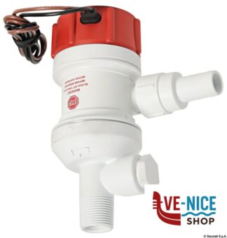 Pompe sentina, giranti, autoclavi Pompe aeratrici per pescato Pompa centrifuga RULE Dual-Port Serve come pompa ricircolo acqua nelle vasche del pescato e delle esche e come attacco per le pompe lavaggio coperta abitualmente installate sulle barche dei pescatori. Un solo foro in carena per collegare 2 pompe.