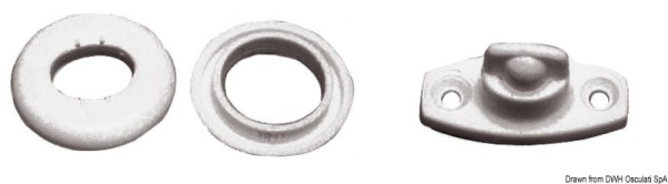 Occhioli, bottoni, coltelli Bottoni, occhioli ed accessori di fissaggio Tourniquet per capote Completamente in nylon . L’occhio si fissa a pressione sulla parte in tela. Molla del tourniquez in nylon , colore bianco.