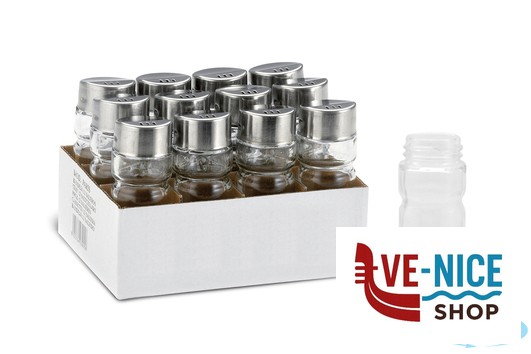 VINAGR SALEROS QUESE – SET 12 SALINI IN VETRO ED ACCIAIO INOX ADATTO PER SALE E PEPE
