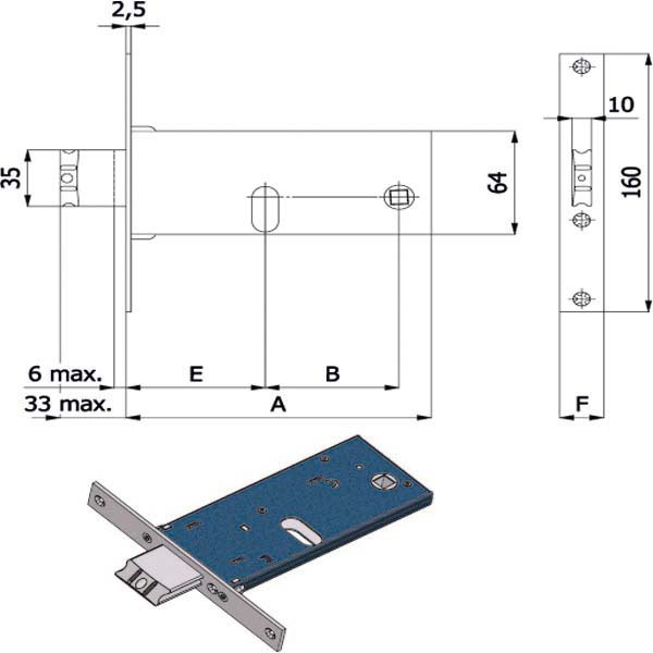 Serratura zincata infilare alluminio fasce Scrocco catenaccio incorporato reversibile Q8 Scrocco lega nichelata antirumore 2 mandate – Misura scatolamm 163×64 Misura frontale inox 16×160/22×160 – Entrata 80 Cilindro non incluso