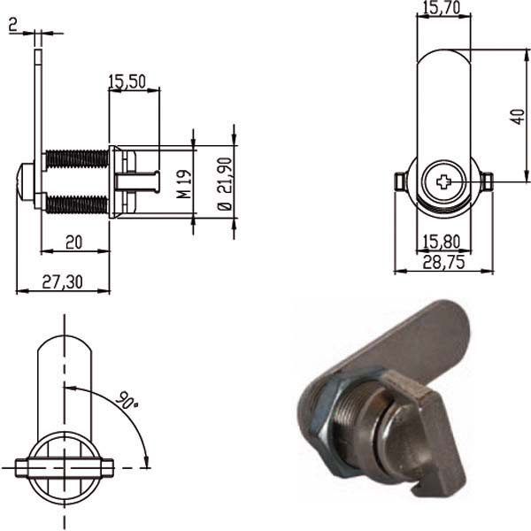 Metallo pressofuso nichelato Diametro mm 19 Lunghezza mm 20 Angolazione apertura 90^ destra Chiusura manopola pressofusa