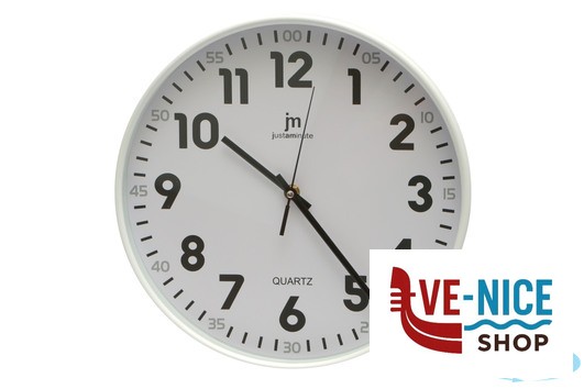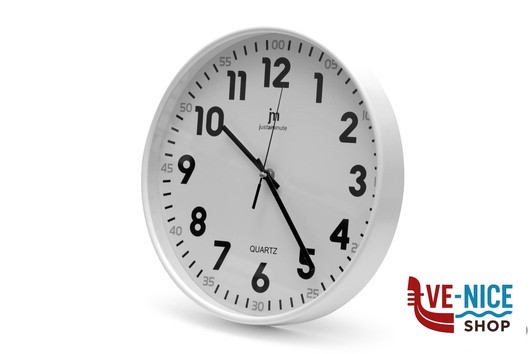 OROLOGIO DA PARETE CON CASSA IN ABS BIANCA, ADATTO PER QUALSIASI AMBIENTE CON MOVIMENTO CONTINUO SILENZIOSO