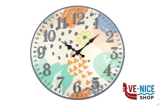 OROLOGIO DA PARETE CON MOVIMENTO AL QUARZO, CASSA BOMBATA IN METALLO, QUADRANTE CON NUMERIIN RILIEVO