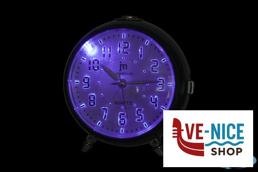 SVEGLIA AL QUARZO ANALOGICA CON CRESCENDO, LUCE (ILLUMINAZIONE DEI NUMERI) E SNOOZE (RIPETIZIONE DOPO 5 MINUTI). MOVIMENTO CONTINUO SILENZIOSO.