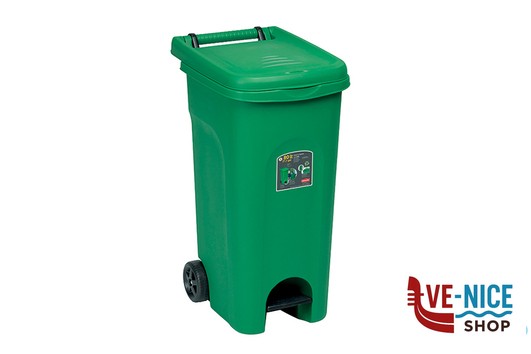 URBAN ECO SYSTEM-BIDONE LT.80 VERDE CON RUOTE E PEDALE 25601