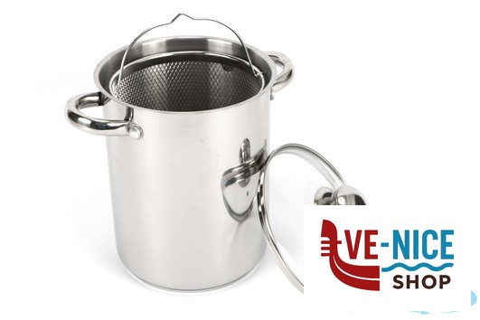 PRATICA ASPARAGERA CON CESTELLO PER CUOCERE FACILMENTE NON SOLO GLI ASPARAGI MA ANCHE GLI SPAGHETTI. OTTIMIZZA GLI SPAZI E CUOCE FORMATI LUNGHI DI PASTA SENZA IL BISOGNO DI ROMPERLI. AD INDUZIONE