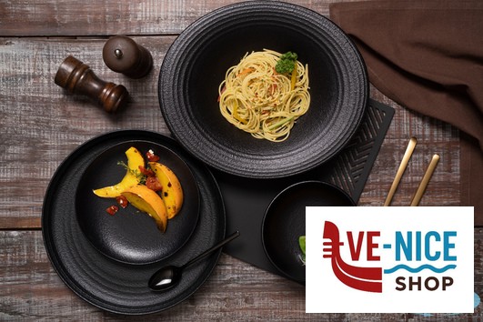 piano BLACK DAZZLE- PIATTO PIANO CM 27 COUPE SENZA BORDO- ALLUMINA ARIANE FINE PORCELAIN