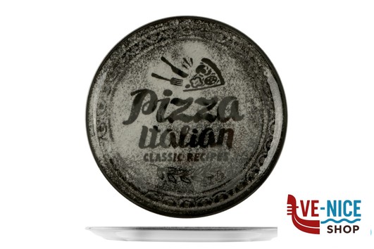 RECIPES NAPOLI-PIATTO PIZZA CM 31 CON DECORO POSATE-TRANCIO COLORE NERO