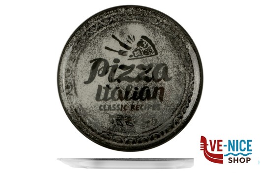 RECIPES NAPOLI-PIATTO PIZZA CM 33 CON DECORO POSATE-TRANCIO COLORE NERO