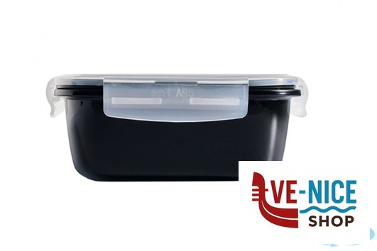 PRATICO CONTENITORE IN VETRO TEMPERATO DI COLORE NERO DOTATO DI COPERCHIO A TENUTA STAGNA IN PLASTICA
