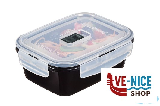 PRATICO CONTENITORE IN VETRO TEMPERAT ODI COLORE NERO DOTATO DI COPERCHIO A TENUTA STAGNA IN PLASTICA