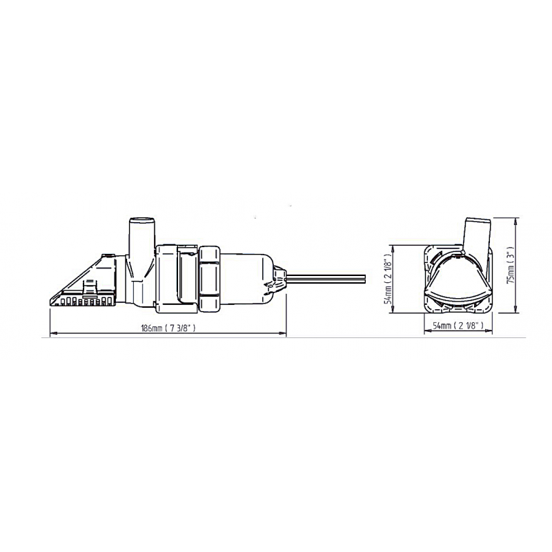 Narrow low profile, fits very small bilges or the space under the engine. Easy installation with vertical or horizontal orientation. Standard for usewith a separate bilge switch