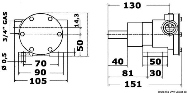 Pompe sentina, giranti, autoclavi Pompe autoadescanti tipo NAUCO Pompa tipo NAUCO PM 36S Corpo in bronzo, giranti in neoprene, da collegare al motore.