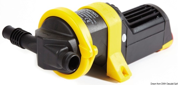 Pompe sentina, giranti, autoclavi Pompe di sentina e acque grigie Pompa di sentina WHALE Gulper IC remota e acque grigie Stesso sistema della Gulper 220/320, non ostruibile, alta prevalenza, testa orientabile, nessun filtro richiesto, autoadescante, può girare a secco. La versione IC è pre-cablata con connettori stagni per collegarsi agli accessori della gamma IC (succhiarola, raccordo 3 vie, scarico doccia) in modo che appena viene rilevata acqua dal sensore elettronico la pompa si attiva per un ciclo di 45 secondi. Può anche essere attivata manualmente. Conforme ISO15083.