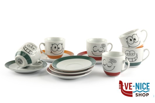 CUPS NEW-SET 6 TAZZE CAFFE CON PIATTO ASSORTITE JY-TNCS02