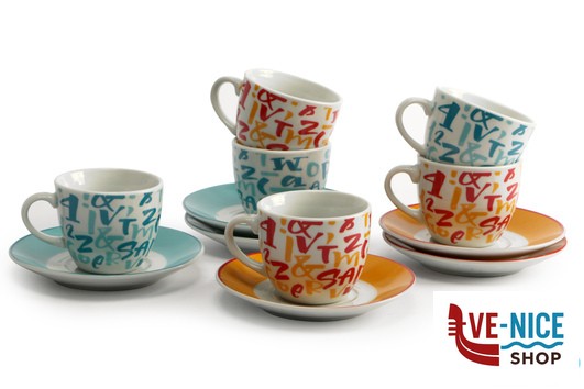 CUPS-SET 6 TAZZE CAFFE CON PIATTO ASSORTITE DEC.4