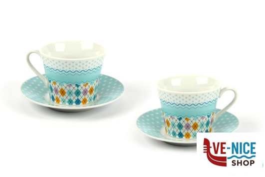 HAITI AZZURRO-SET 2 TAZZE THE CON PIATTO A180F-2-L