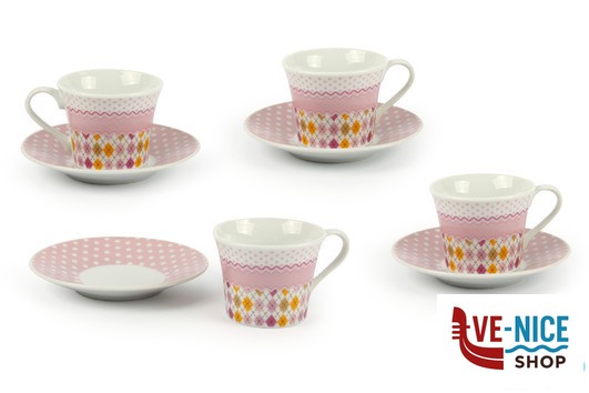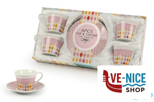 HAITI ROSA-SET 4 TAZZE CAFFE CON PIATTO A80F-4-P