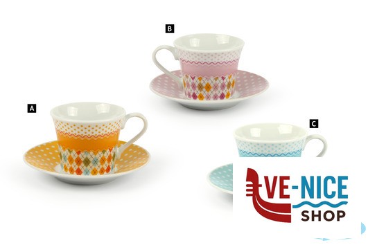 HAITI ROSA-SET 4 TAZZE CAFFE CON PIATTO