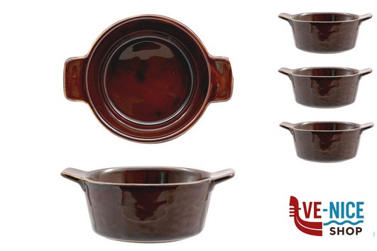 JUSTCOLOR-CONFEZIONE 3 MINI CASSERUOLE TONDE MARRONI CM.13 H.4,9