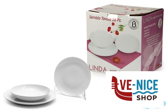 LINDA COUPE-SERVIZIO TAVOLA 18 PEZZI PORCELLANA BIANCO