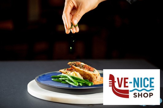 PRESTIGIOSA LINEA DI PIATTI IN PORCELLANA CON FONDO LUCIDO IN BLU INTENSO E PROFILI IN NERO OPACO