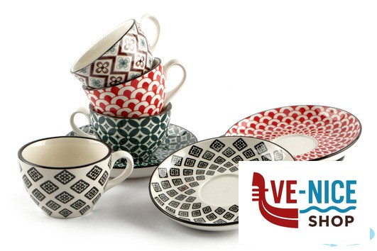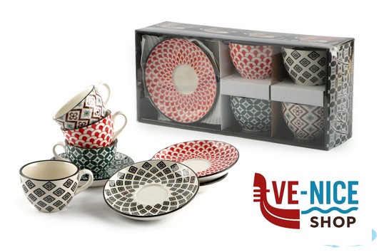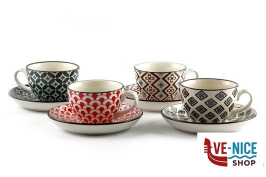 MOSAIK-CONFEZIONE 4 TAZZE THE CON PIATTO CL.16 DECORI ASSORTITI RH8621L-S4