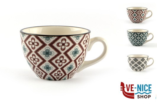 LINEA DI PIATTI E ACCESSORI PER LA TAVOLA IN STONEWARE, CON ELEGANTI E BRILLANTI DECORAZIONI CHE CONFERISCONO UN ASPETTO ARABEGGIANTE E CONSENTONO CREATIVI MIX DI FORME E DI COLORI